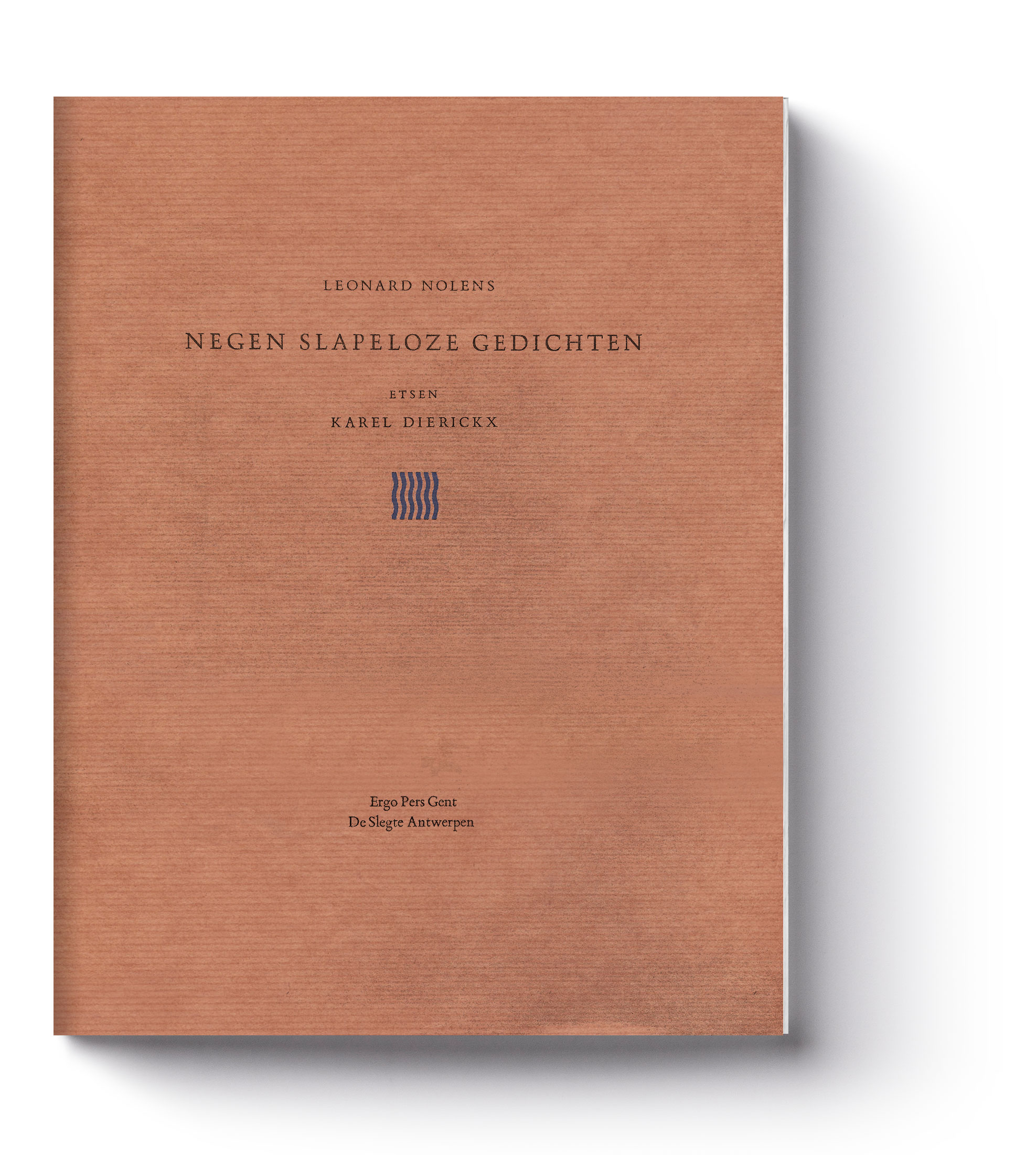‘Negen slapeloze gedichten’ / ‘Neun schlaflose Gedichte’, een tweetalige uitgave met gedichten van Leonard Nolens en etsen van Karel Dierickx verschijnt op 1 juni 2007 bij Ergo Pers te Gent en Antiquariaat de Sleghte in Antwerpen. ‘Negen slapeloze gedichten’ / ‘Neun schlaflose Gedichte’, verschijnt in een oplage van zestig exemplaren, Arabisch genummerd van 1 tot 60 en 9 exemplaren geletterd van A tot I, bestemd voor de medewerkers. Bij elk boek hoort een suite met vijf door Karel Dierickx getekende en genummerde etsen en een door Leonard Nolens handgeschreven en gesigneerd gedicht. Elk boek werd in het colofon gesigneerd door de auteur en de kunstenaar. De gedichten werden naar het Duits vertaald door Ard Posthuma. De etsen werden gedrukt door Henri Hemelsoet en Eric Levert. De tekst werd gezet uit Stempel Trump Mediaeval en gedrukt op Hahnemühle 230 gr door Rein Ergo die ook instond voor ontwerp en afwerking.
