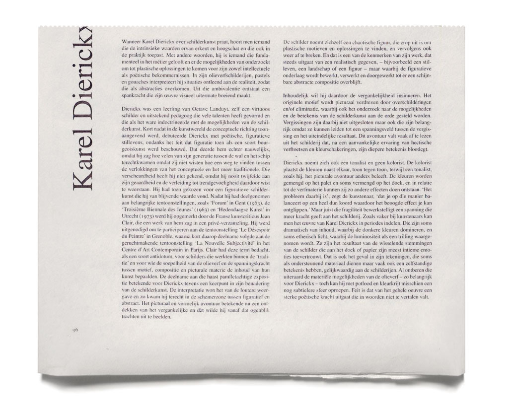 Hoet J., Inleiding bij een tentoonstelling van de schilder Karel Dierickx (tekst in het archief van de kunstenaar), Galerie Roussel, Brugge, 1993